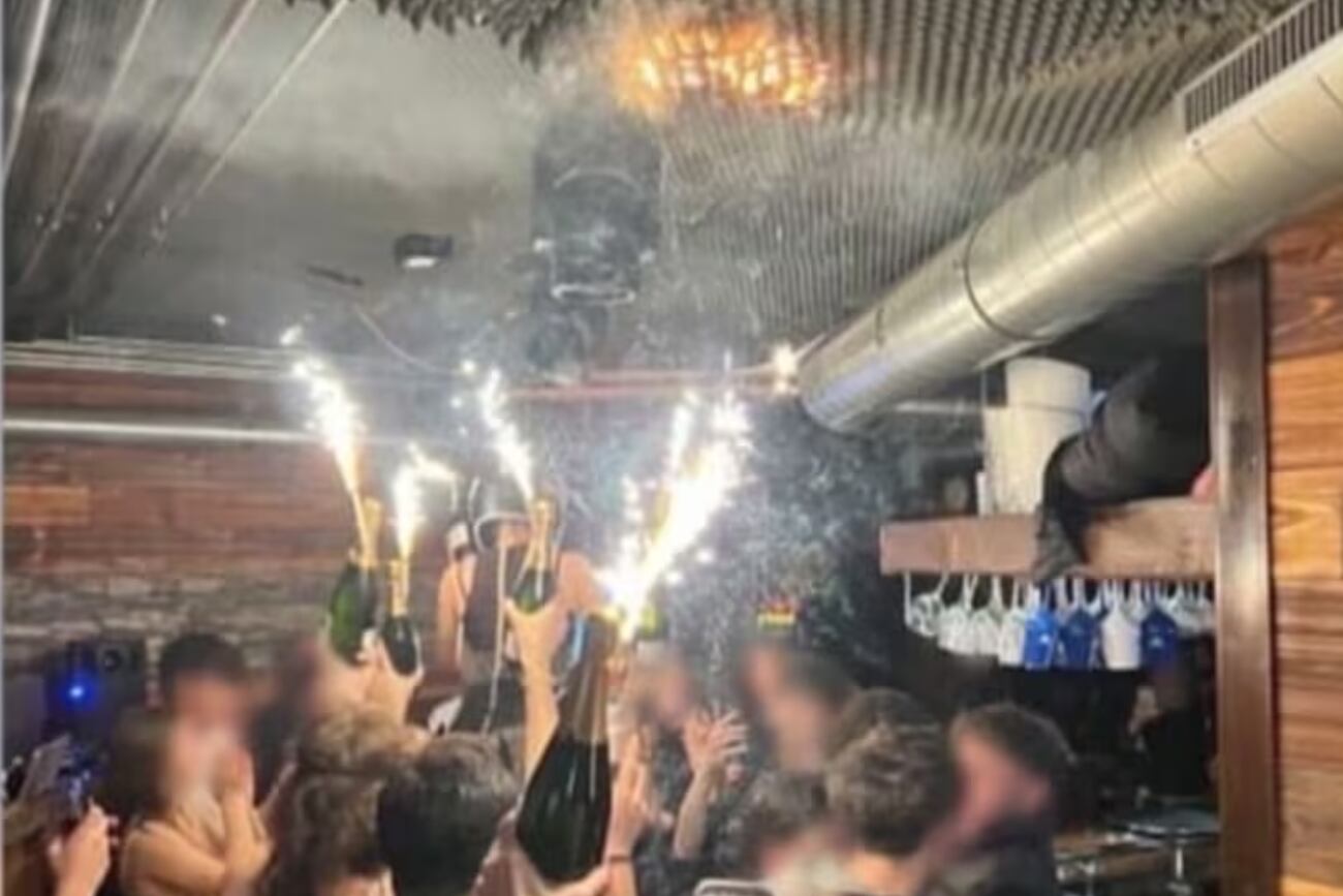 • El origen del fuego se relaciona con una bengala encendida dentro de una botella de champán.