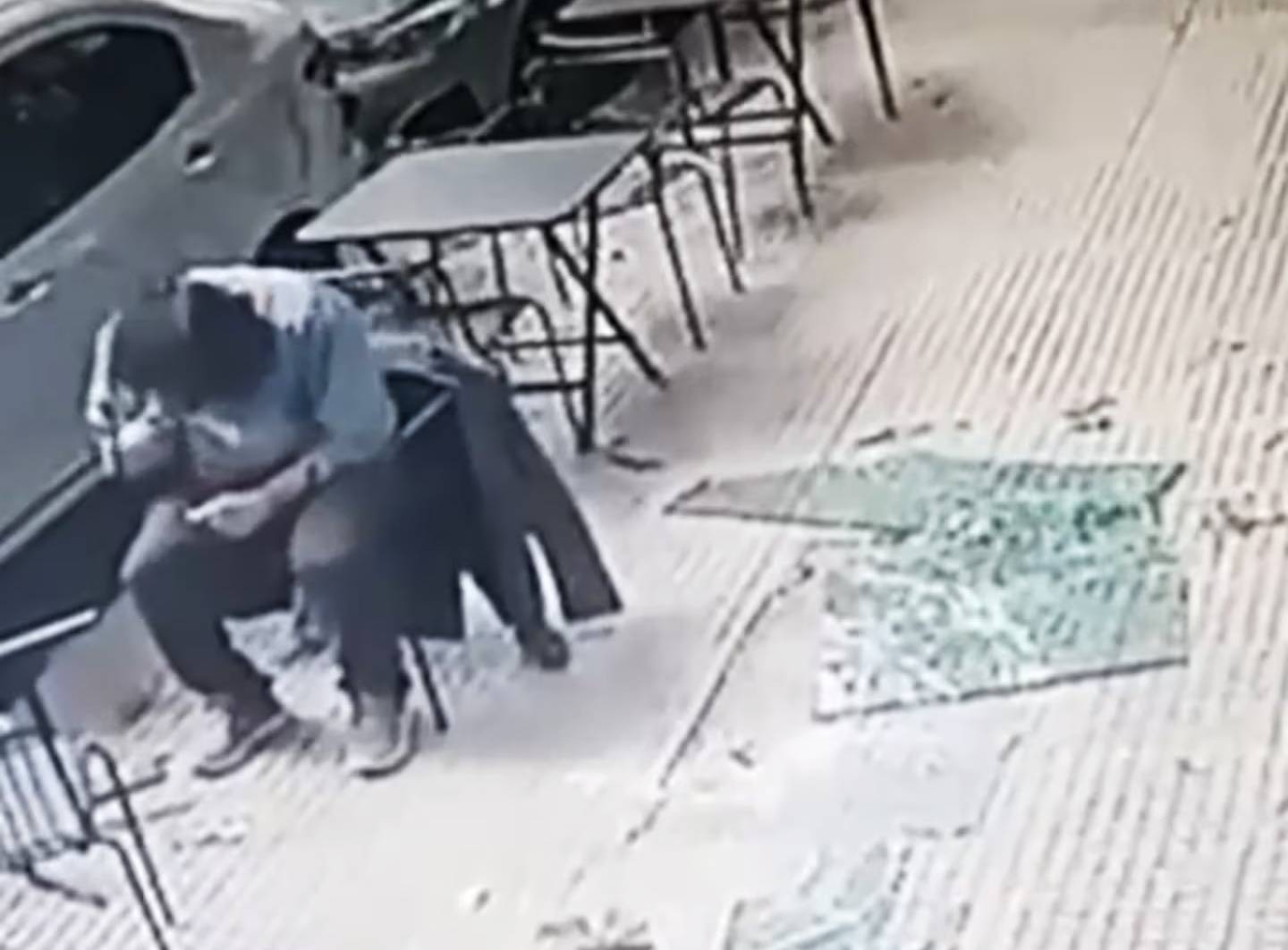 Increíble incidente: un vidrio se cayó de un edificio y golpeó a un cliente en un bar